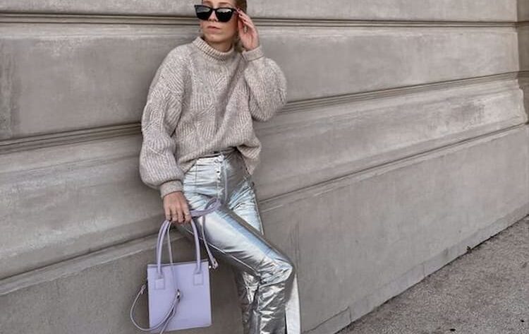 A calça metalizada é perfeita para trazer mais brilho a sobriedade dos dias de inverno. Aqui o look com calça metalizada pode ser combinada com um suéter oversized que ficará super charmoso. Este look não apenas te mantém aquecida, mas também adiciona uma pitada de brilho aos dias mais cinzentos e tudo isso com muito conforto e estilo.