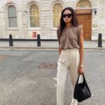 Você pode combinar a saia com uma blusa de seda ou body ajustado para um visual clássico. Já nos dias mais frios, um blazer ou jaqueta estruturada pode complementar a produção.
