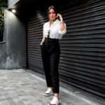 Já nos pés você pode usar desde sandálias de salto alto para passar um ar mais elegante ou até mesmo um tênis para um visual mais casual.