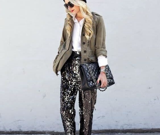 10. Que tal fazer uma combinação de blusa com brilho para o seu look com calça de paetê? – Foto: Pinterest
